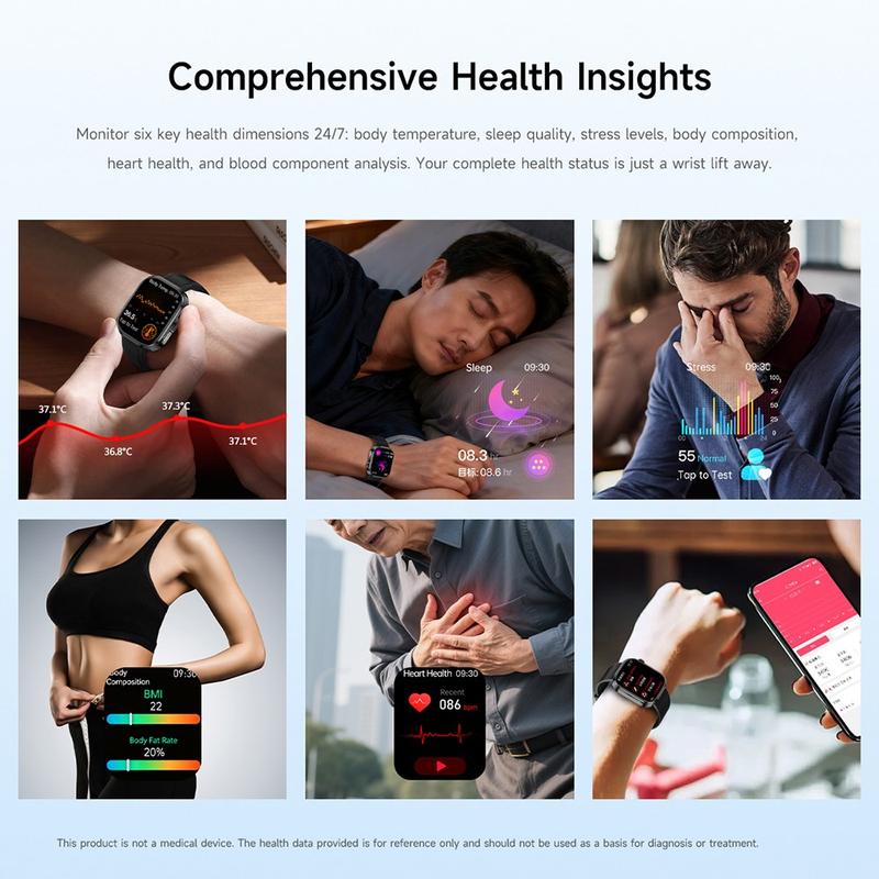 - Advanced health tracking including ECG, heart rate, blood oxygen, temperature, sleep and stress monitoring
