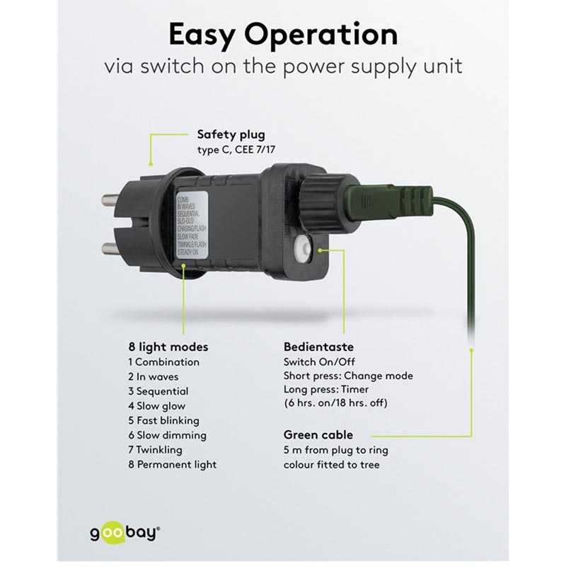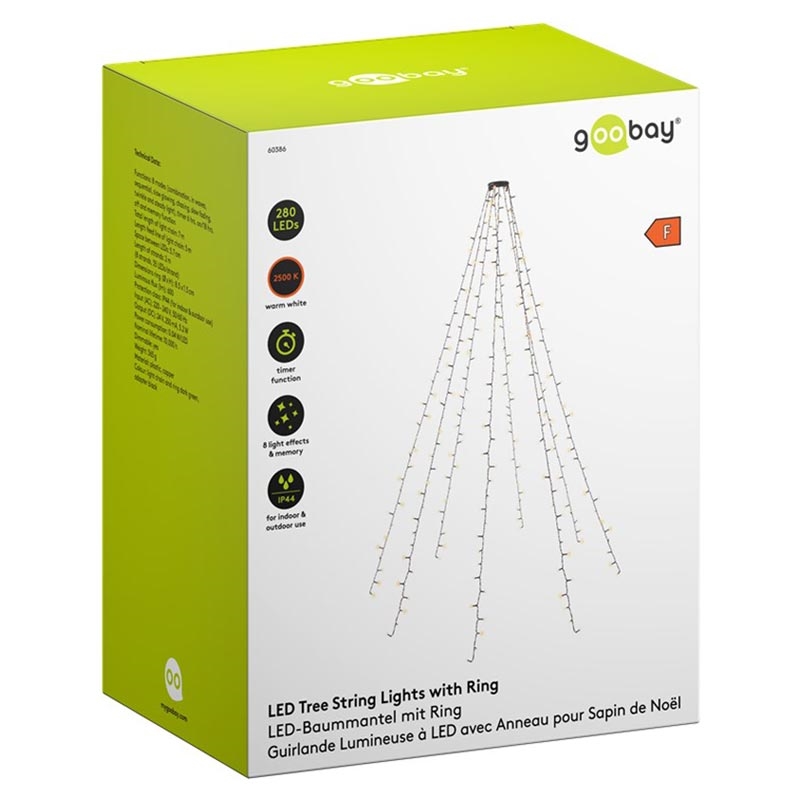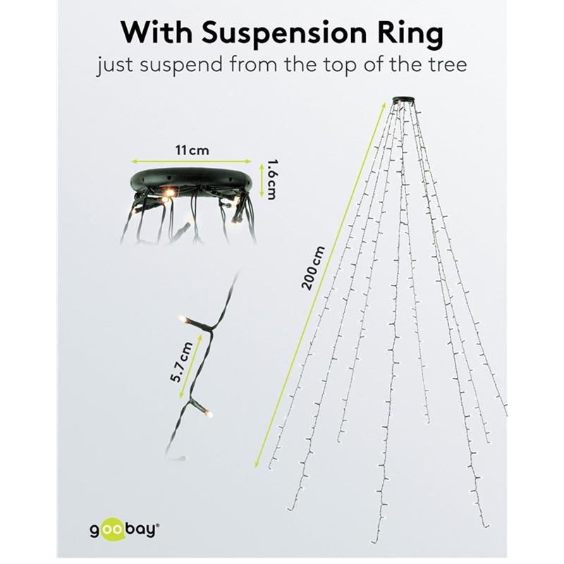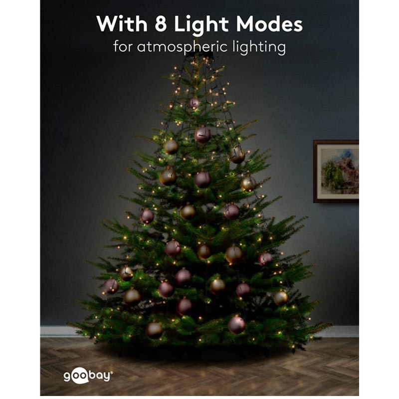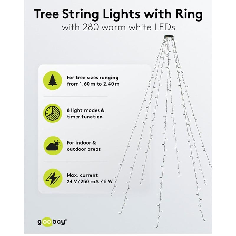 Goobay 280-LED Tree String Lights with Hanging Ring - 8x2m, Timer, Memory, 8 Modes, Warm White 2500 K, Indoor/Outdoor (IP44)