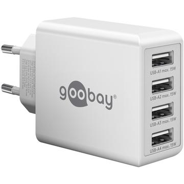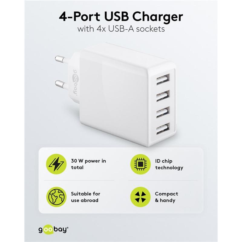 Goobay 30W 4x USB-A Wall Charger - 4-Port Wall Adapter with Smart Charging Detection
