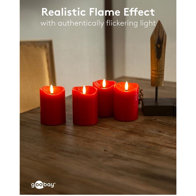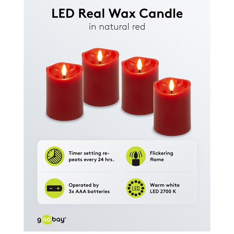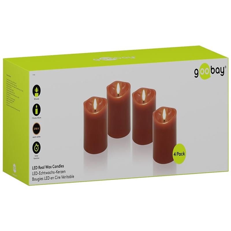 Goobay LED Real Wax Candles - 3D Flame, Timer Function, Warm White 2700 K, Battery-Operated