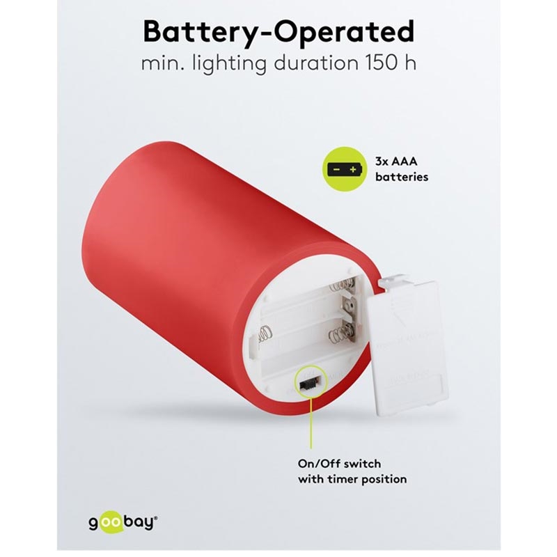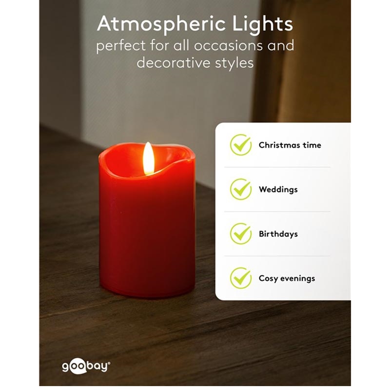 Add classic candlelight charm to any space with this set of 4 Goobay LED Real Wax Candles. Crafted from genuine wax and equipped with 3D flame cones, they create a beautifully realistic flickering effect that captures the warmth of traditional candles—without soot, heat or fire hazards. The warm white 2700 K glow provides a cosy atmosphere suitable for year-round décor, from intimate dinners to festive Christmas celebrations. With an automatic 6-hour timer and battery operation, these candles offer effortless ambience wherever real flames may be unsafe or not permitted.