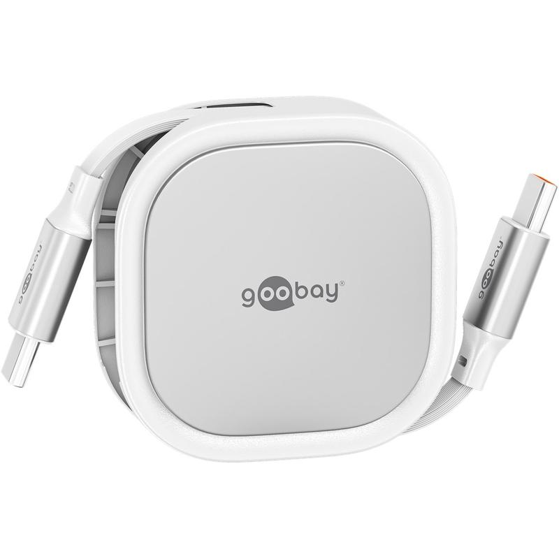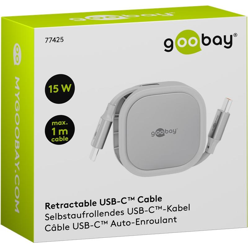 Goobay Retractable USB-C Cable - 1m Flat Charging Cable with 15W Power and Auto-Retract Mechanism