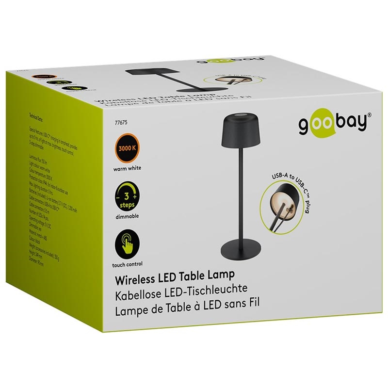 Goobay Wireless LED Table Lamp - Size S (25 cm), Touch Control, Warm White 3000 K, 150 lm, USB-C Rechargeable, IP44