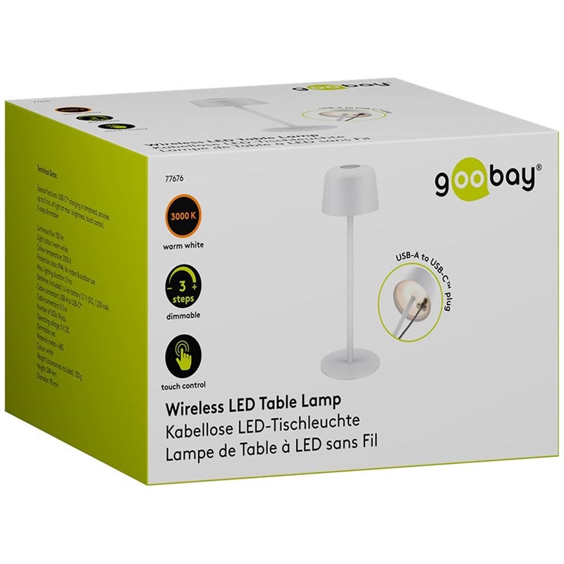 Goobay Wireless LED Table Lamp - Size S (25 cm), Touch Control, Warm White 3000 K, 150 lm, USB-C Rechargeable, IP44