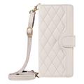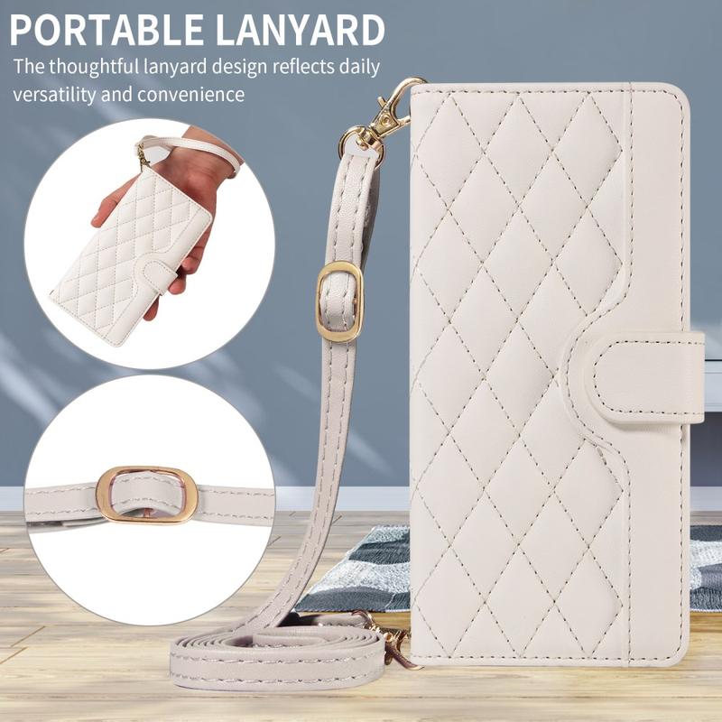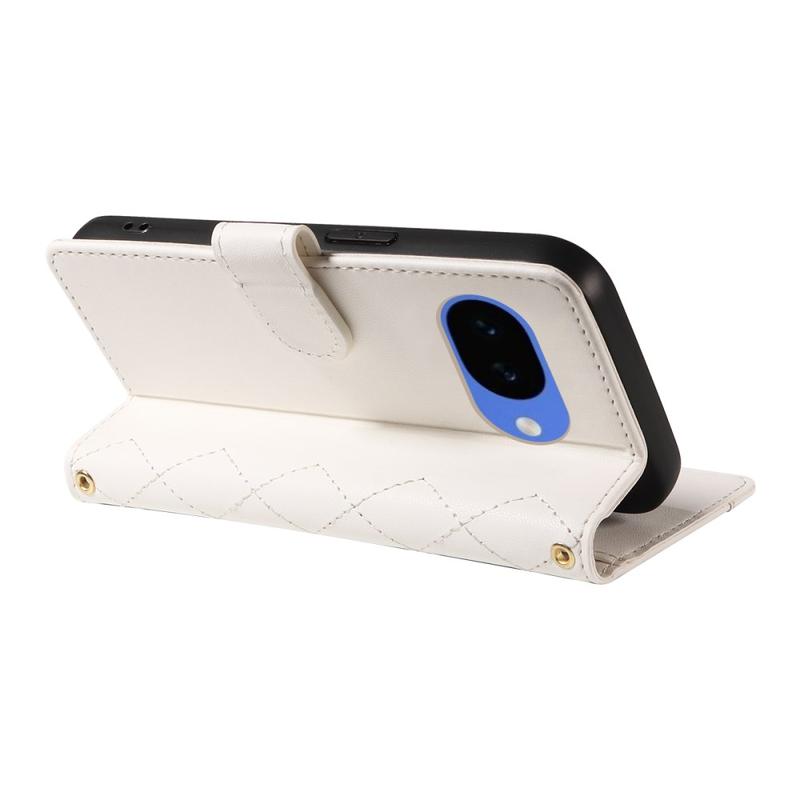 Luxury Quilted Wallet Case with Shoulder & Wrist Strap for Google Pixel 10a - Rhombus Pattern Protective Cover