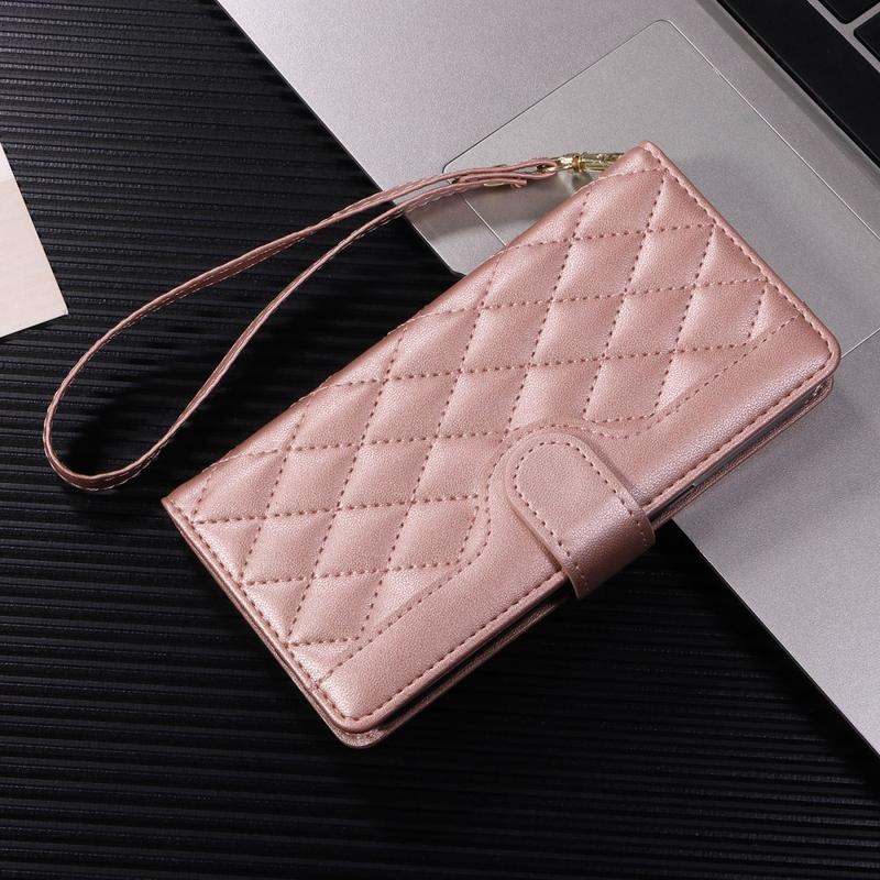 Luxury Quilted Wallet Case with Shoulder & Wrist Strap for Google Pixel 10a - Rhombus Pattern Protective Cover