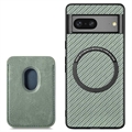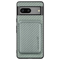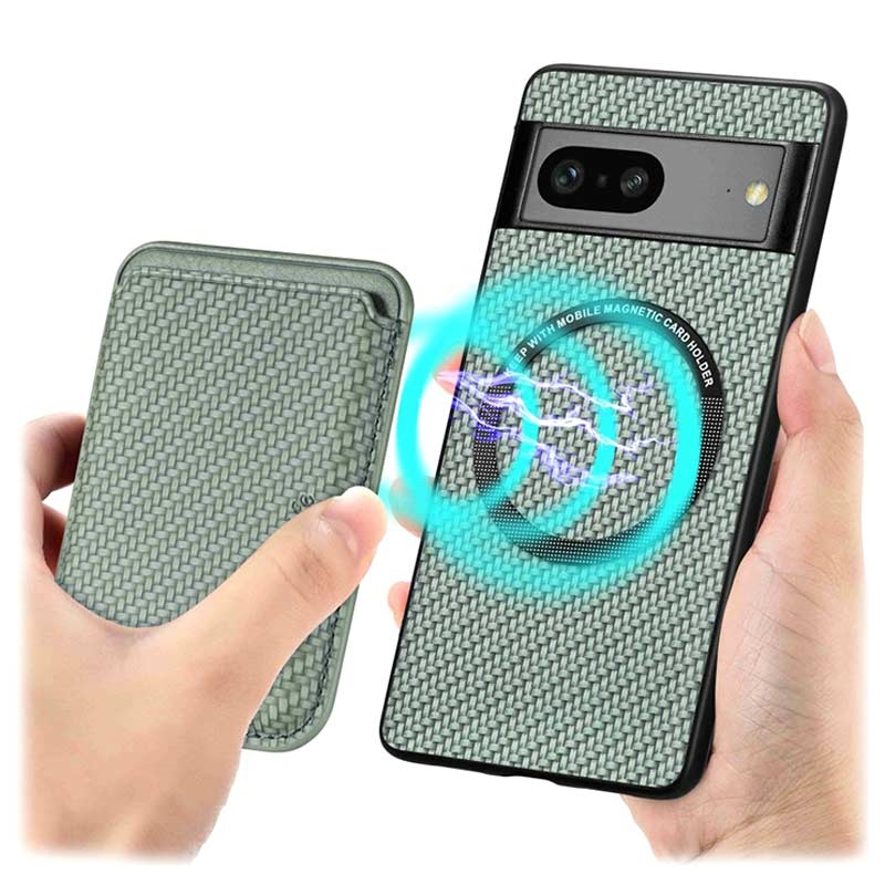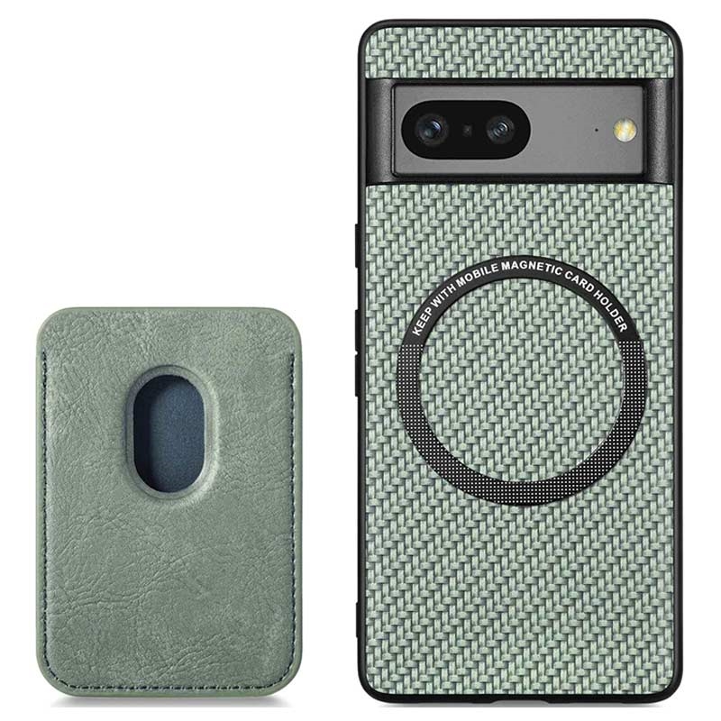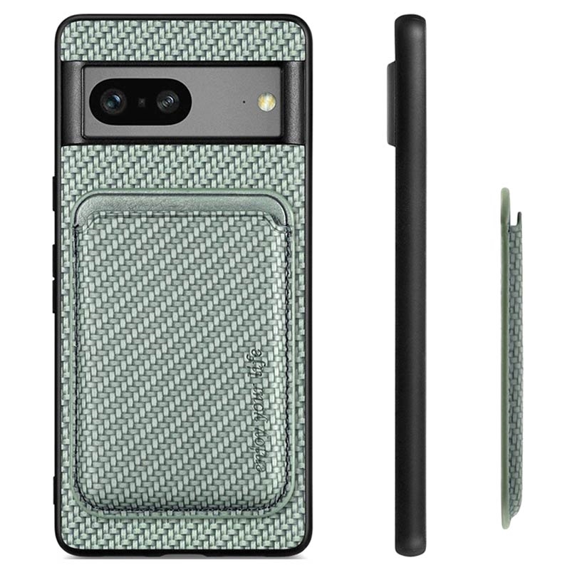 Google Pixel 7 Magnetická Pouzdra s Držákem Karty - Uhlíkové Vlákno - Zelená