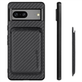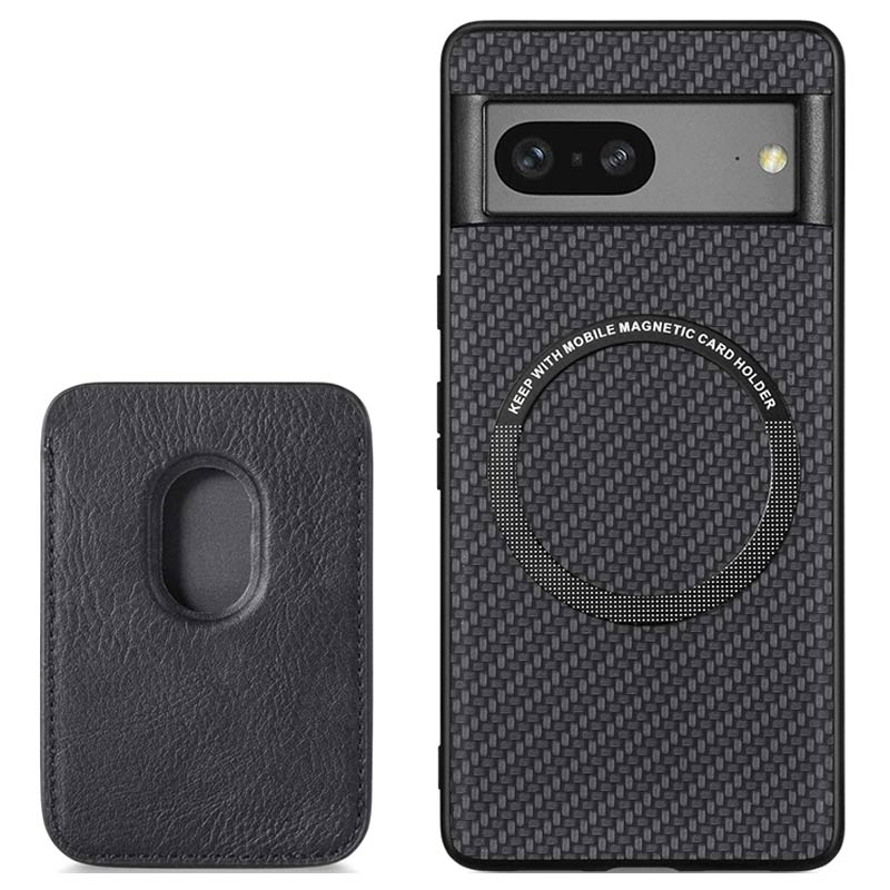 Magnetické Pouzdro s Držákem Karty pro Google Pixel 7 - Uhlíkové Vlákno