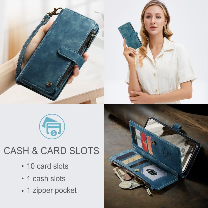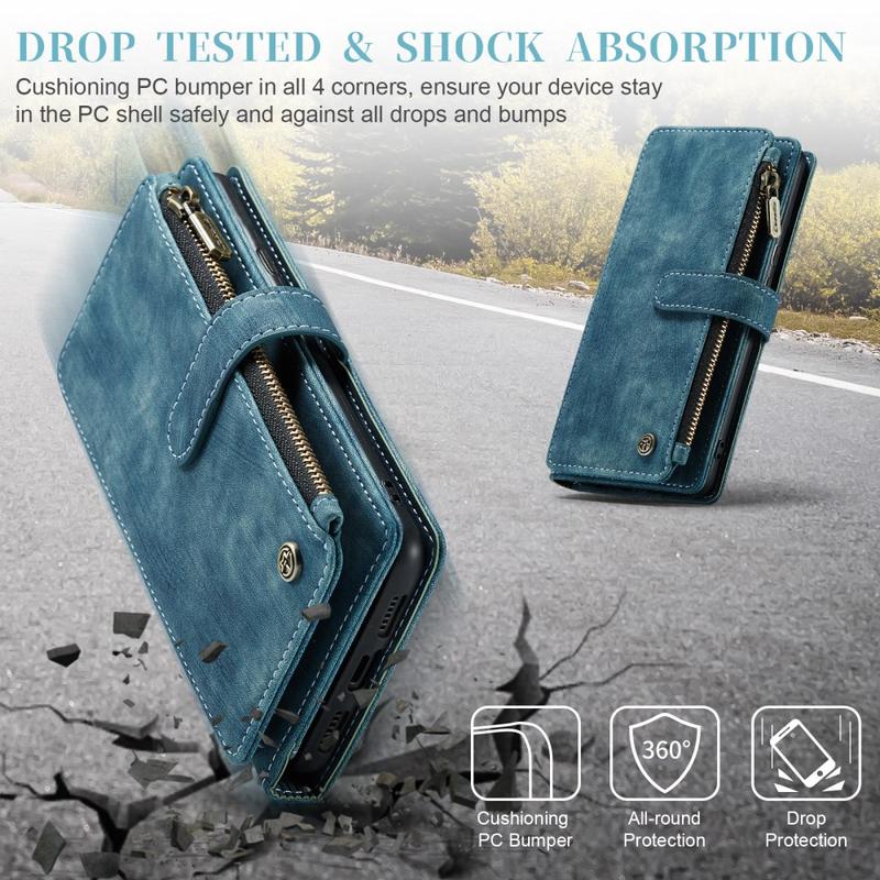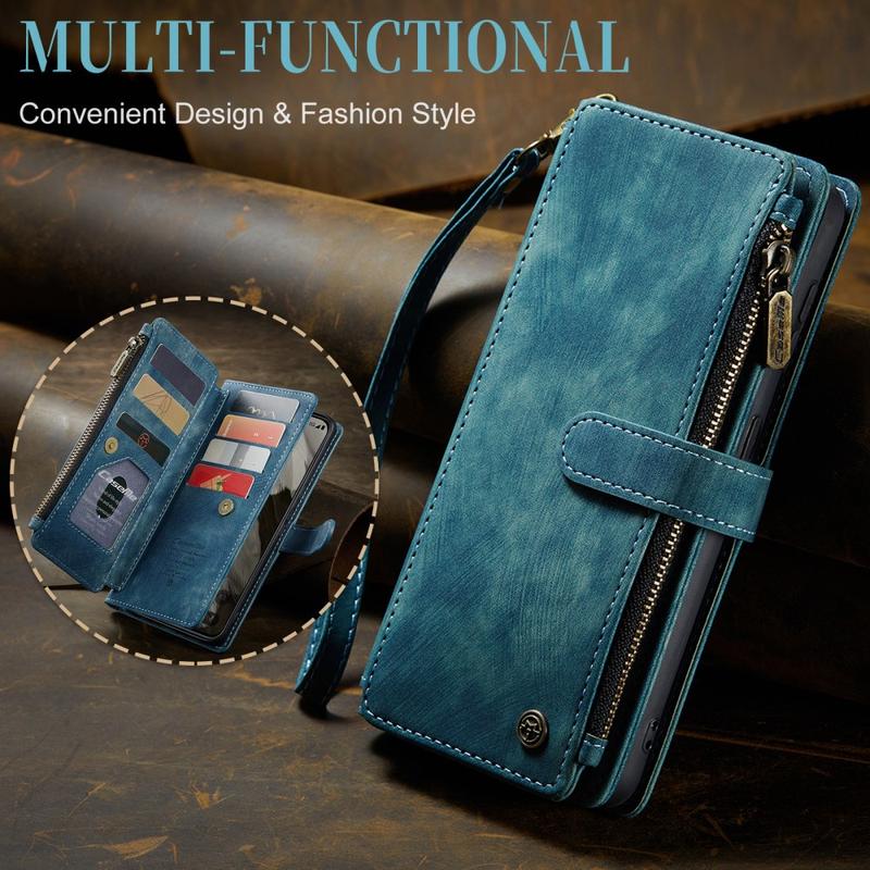 The Caseme C30 multifunctional wallet case for Google Pixel 8 brings exceptional all-around protection and an exclusive, refined design. This elegant case is made of premium polyurethane, reinforced with a shock-resistant TPU inner cover that snuggles your Google Pixel 8 perfectly. Meanwhile, the Caseme C30 wallet case is enhanced with numerous card slots, one large money compartment inside, and one outside zipper pocket, all protected by a secure magnetic closure.