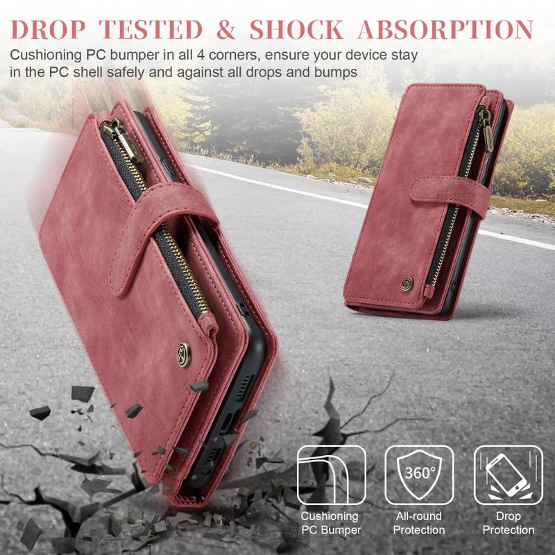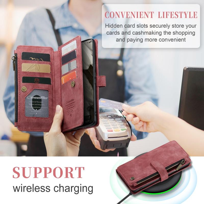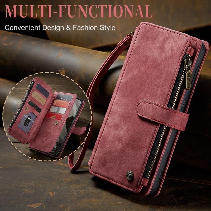 The Caseme C30 multifunctional wallet case for Google Pixel 8 brings exceptional all-around protection and an exclusive, refined design. This elegant case is made of premium polyurethane, reinforced with a shock-resistant TPU inner cover that snuggles your Google Pixel 8 perfectly. Meanwhile, the Caseme C30 wallet case is enhanced with numerous card slots, one large money compartment inside, and one outside zipper pocket, all protected by a secure magnetic closure.