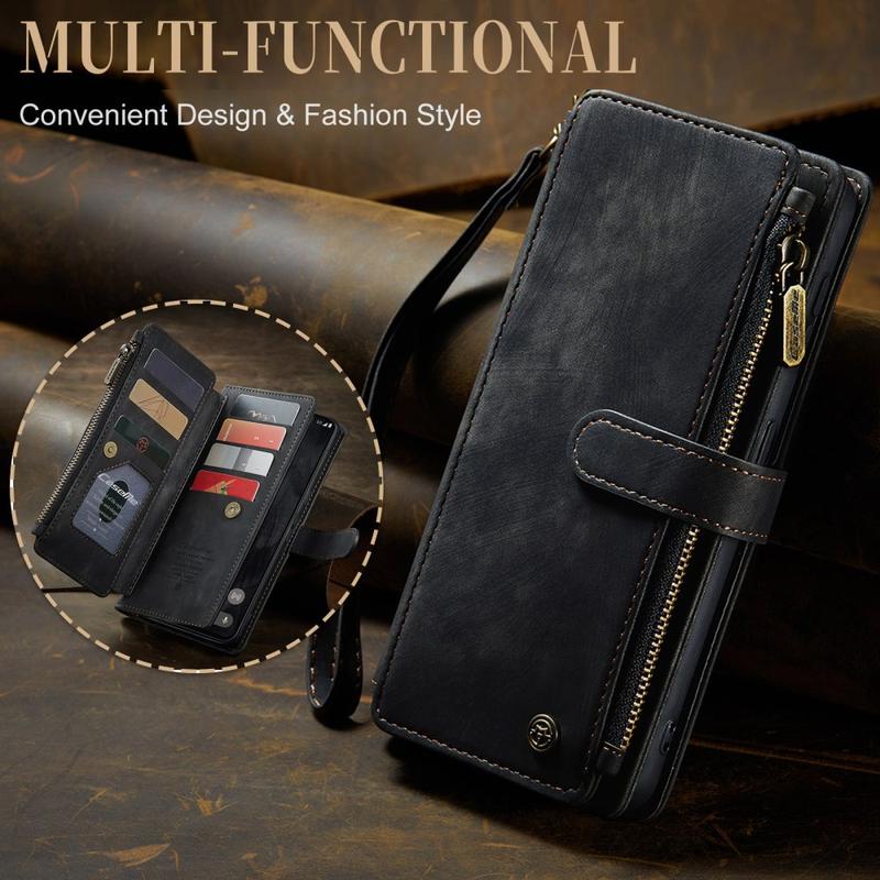 The Caseme C30 multifunctional wallet case for Google Pixel 8 Pro brings exceptional all-around protection and an exclusive, refined design. This elegant case is made of premium polyurethane, reinforced with a shock-resistant TPU inner cover that snuggles your Google Pixel 8 Pro perfectly. Meanwhile, the Caseme C30 wallet case is enhanced with numerous card slots, one large money compartment inside, and one outside zipper pocket, all protected by a secure magnetic closure.