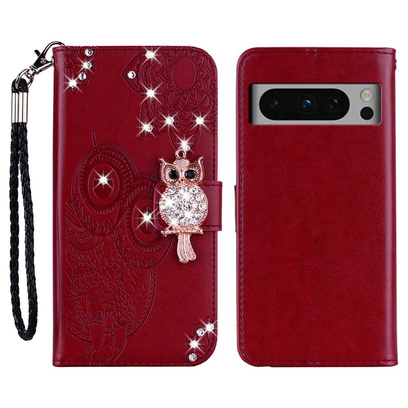 Keep your Google Pixel 8 Pro safe and stylish with this Owl Rhinestone Wallet Case. Made with a premium polyurethane shell and a flexible TPU inner case, this case is durable for long term use, providing protection against daily wear and tear, scratches, marks, and scrapes. The distinctive owl imprint and rhinestone decoration make this case eye-catching and trendy, while the practical design combines your wallet and phone case into one handy unit. The supporting stand design allows for convenient free-hands use when watching movies or reading, while the ultra-strong magnetic closure keeps all your valuable items secure. This case ensures full access to ports and function buttons, speakers, and the camera for hassle-free use. It also comes with a handy strap for easy carrying, making it the perfect accessory for your Google Pixel 8 Pro.