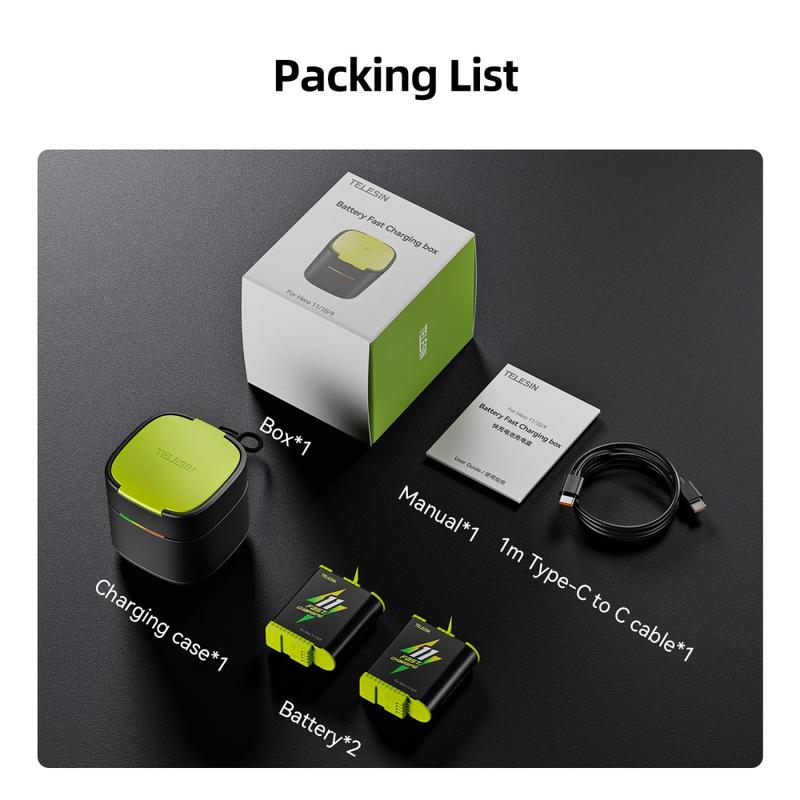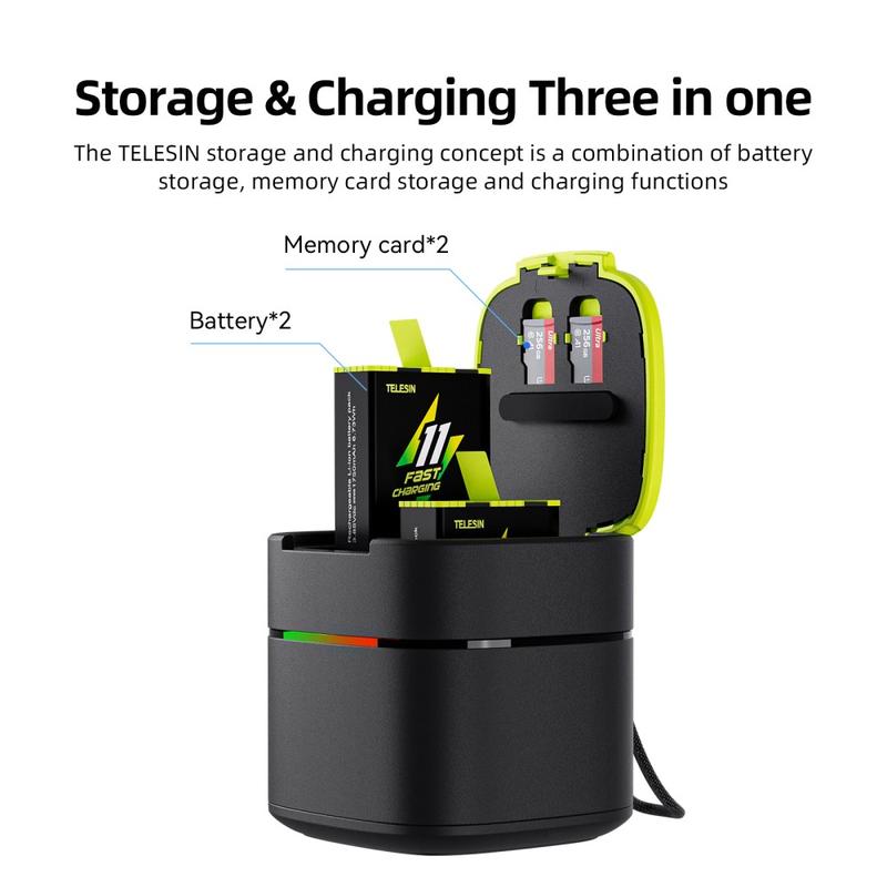 TELESIN GP-FCK-B11 2-Slot Battery Charger & Storage Box for GoPro Hero 11 – Fast & Reliable Power Solution