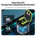- Built-In Safety Features – Equipped with overcurrent, overvoltage, overheating, and short-circuit protection for safe charging.