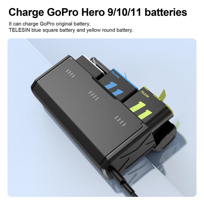 - Compatible Batteries: GoPro Hero 9/10/11 Original Batteries / TELESIN Blue Square & Yellow Round Batteries