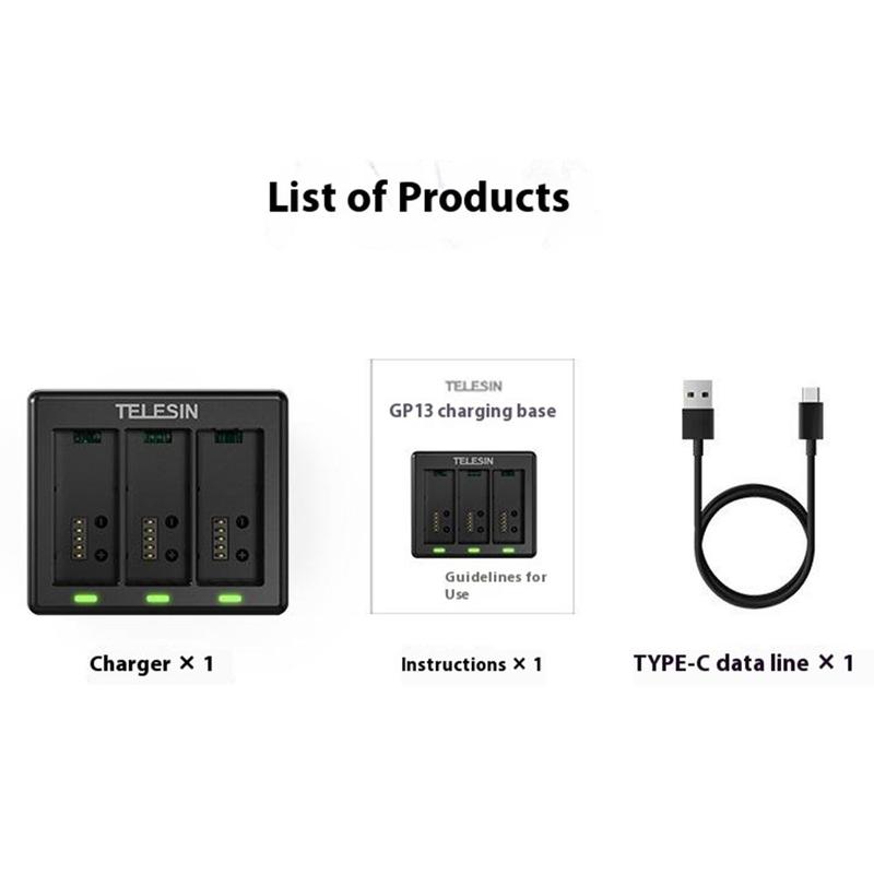 - 1 × TELESIN S0-BCG-1 Triple Channel Battery Charger