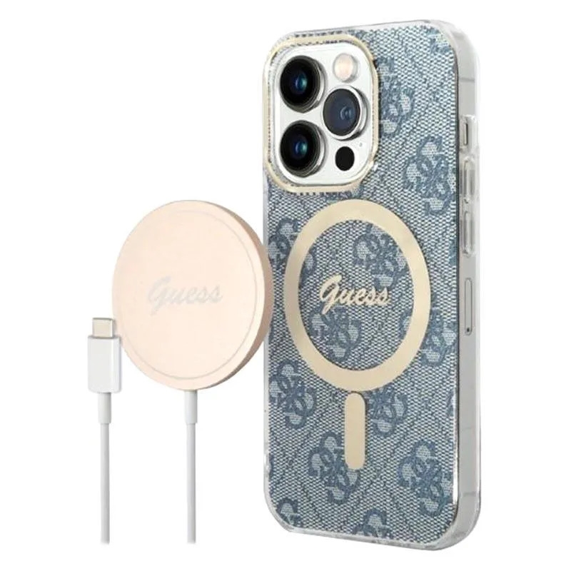 Guess 4G Edition Bundle Pack Hybridní Pouzdro & Magnetická Bezdrátová Nabíječka pro iPhone 14 Pro - 20W