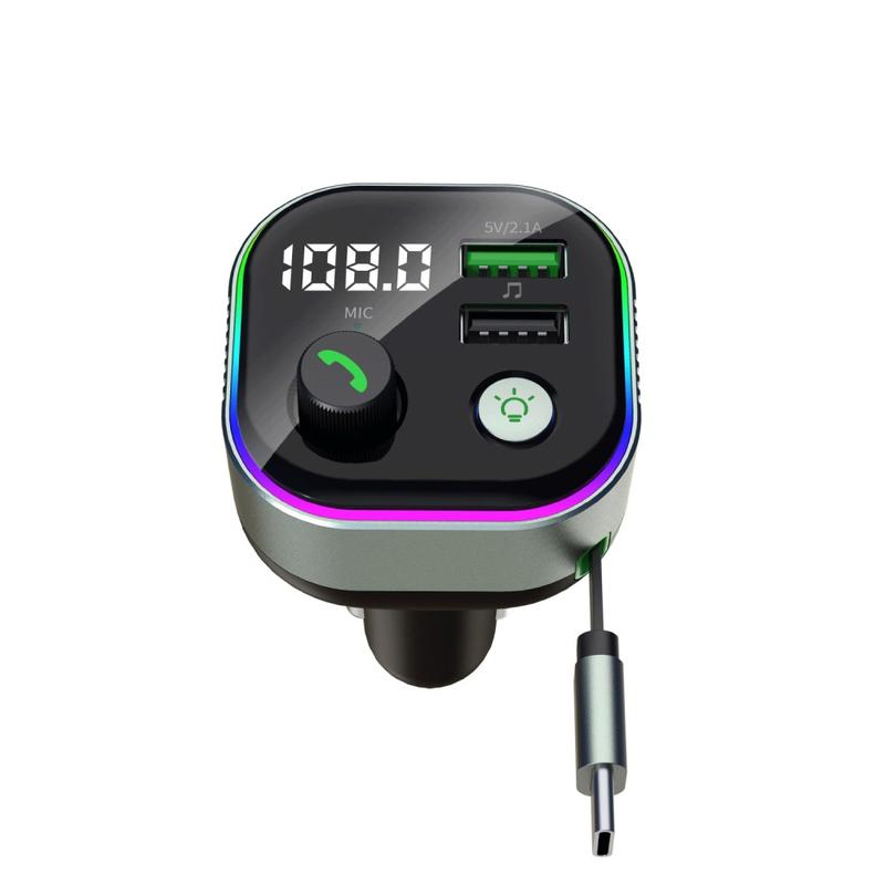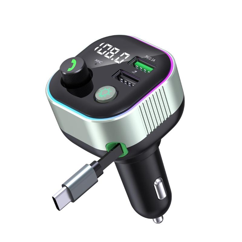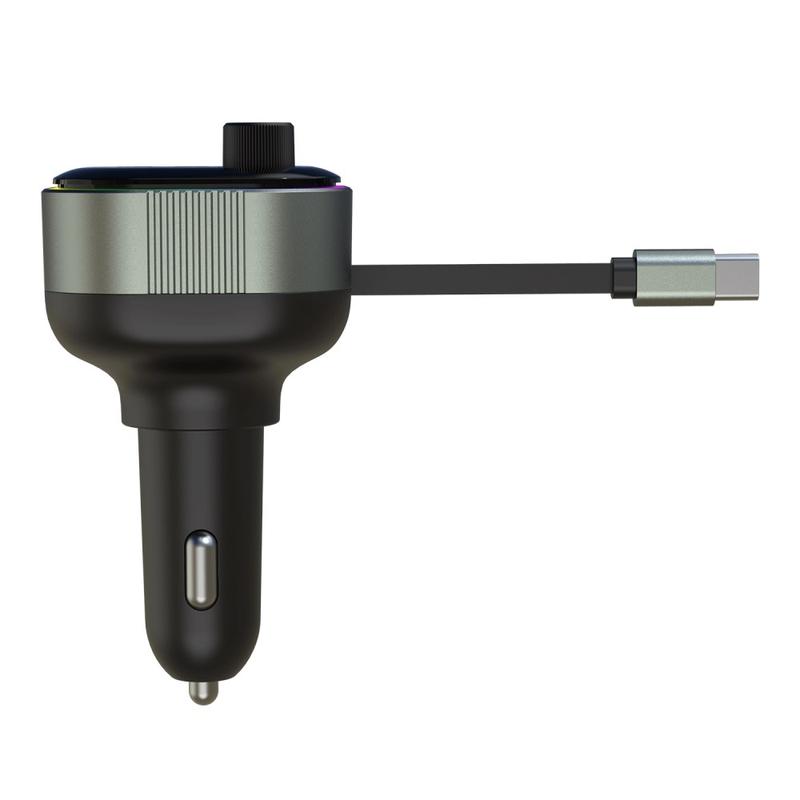 GZ11 65W PD Fast Charging Car Charger with Retractable Type-C Cable, Bluetooth Transmitter, Ambient Lighting