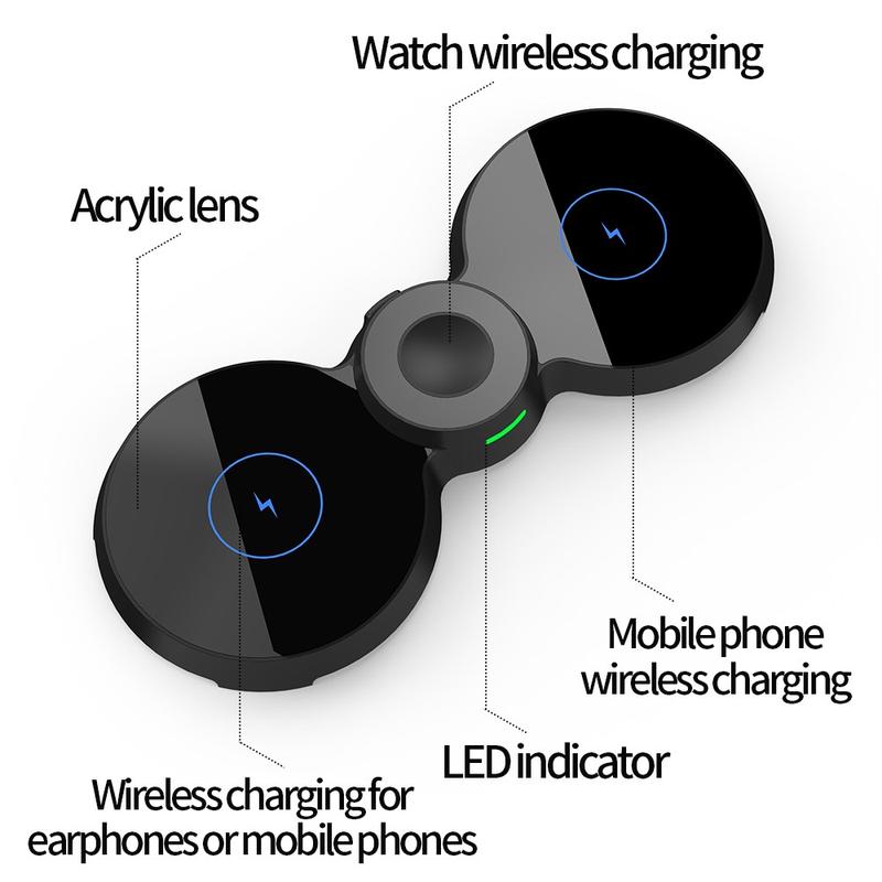 H20 3 v 1 15W bezdrátová nabíječka Držák rychlonabíjecí stanice pro chytrý telefon/chytré hodinky/sluchátka
