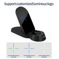 Skládací základna bezdrátové nabíječky 3 v 1, která dokáže rychle nabíjet chytré telefony/hodinky/sluchátka, jedna nabíječka, ale tři funkce, díky kterým bude váš pracovní stůl čistý a uklizený.