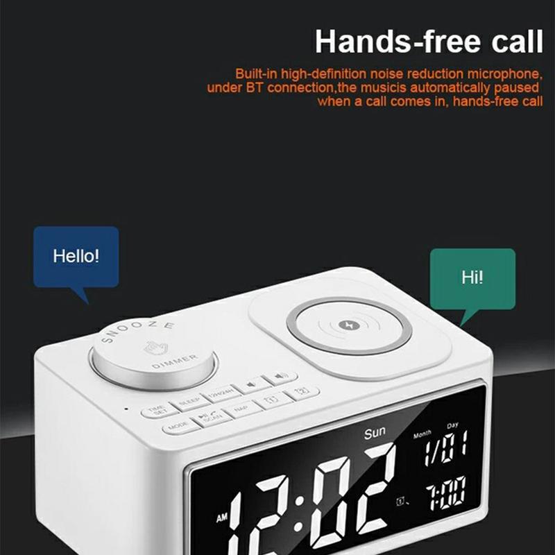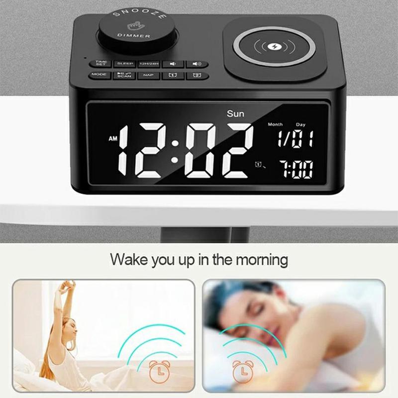 Enhance your daily routine with the H7 Multifunctional Wireless Charging Bluetooth Speaker Clock Radio, a perfect blend of functionality, convenience, and modern design.