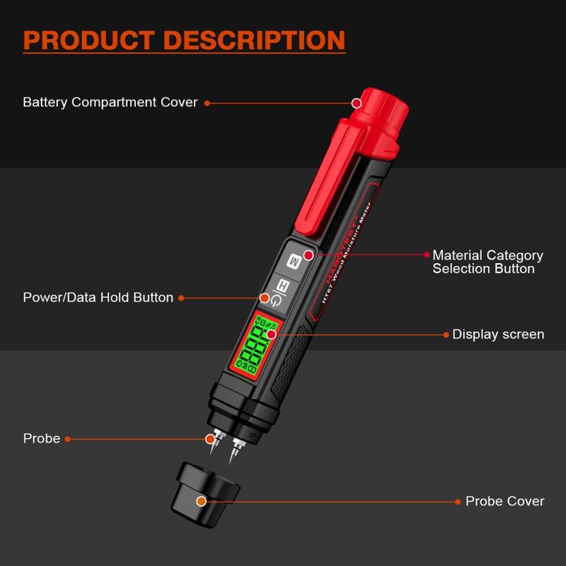 The pen-style body makes it easy to carry and use on site, while the stainless steel probes are built for regular testing across different surfaces. A 3-color backlit LCD display also helps make results easier to read, showing moisture conditions more clearly at a glance even in dimmer environments.