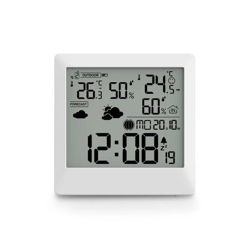 - Clear Digital Display showcasing temperature, humidity, weather forecast, and moon phases
