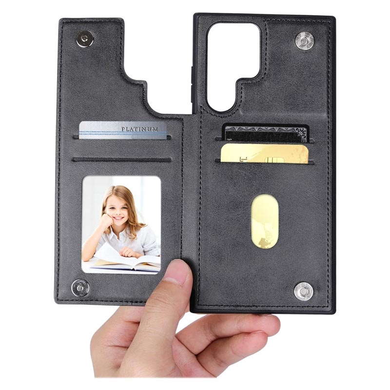 Použijte toto pouzdro Hanman Mika jako náhradu peněženky, také jako perfektní ochranu před každodenními nárazy a udržte svůj Samsung Galaxy S23 Ultra 5G nepoškozený! Navrženo s několika sloty pro karty, takže své základní karty můžete nosit vedle svého Samsung Galaxy S23 Ultra 5G.