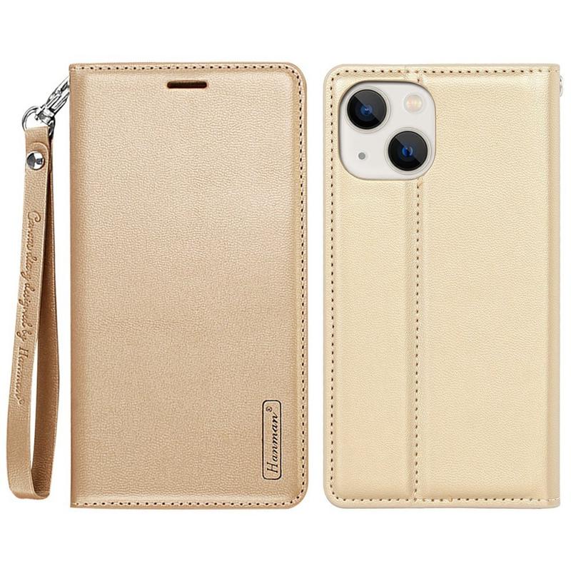 Pouzdro na telefon HANMAN Minor Series pro iPhone 14, PU kůže + TPU skládací stojánek s magnetickým automaticky absorbovaným krytem
