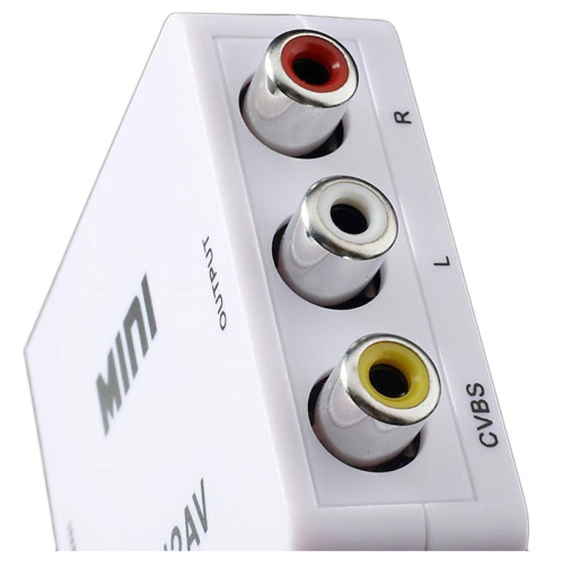 Tento HDMI na RCA Converter , snadno přenosný a užitečný, umožňuje převést digitální signál HDMI na normální CVB a stereo zvukové signály. Podporuje formáty NTSC a PAL TV.
