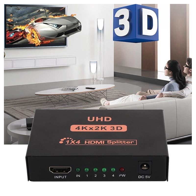 Rozdělte jeden vstupní signál HDMI do čtyř identických výstupních signálů a přenos video a zvuku bez jakékoli ztráty kvality s tímto vysoce kvalitním rozbočovačem HDMI. Můžete jej použít k porovnání s notebookem, počítačem, DVD, set-top box nebo herní konzolí až na čtyři HDMI televizory nebo projektory. Podporuje rozlišení Full HD 1080p a 3D a může dosáhnout rozlišení obrazu 3840x2160.