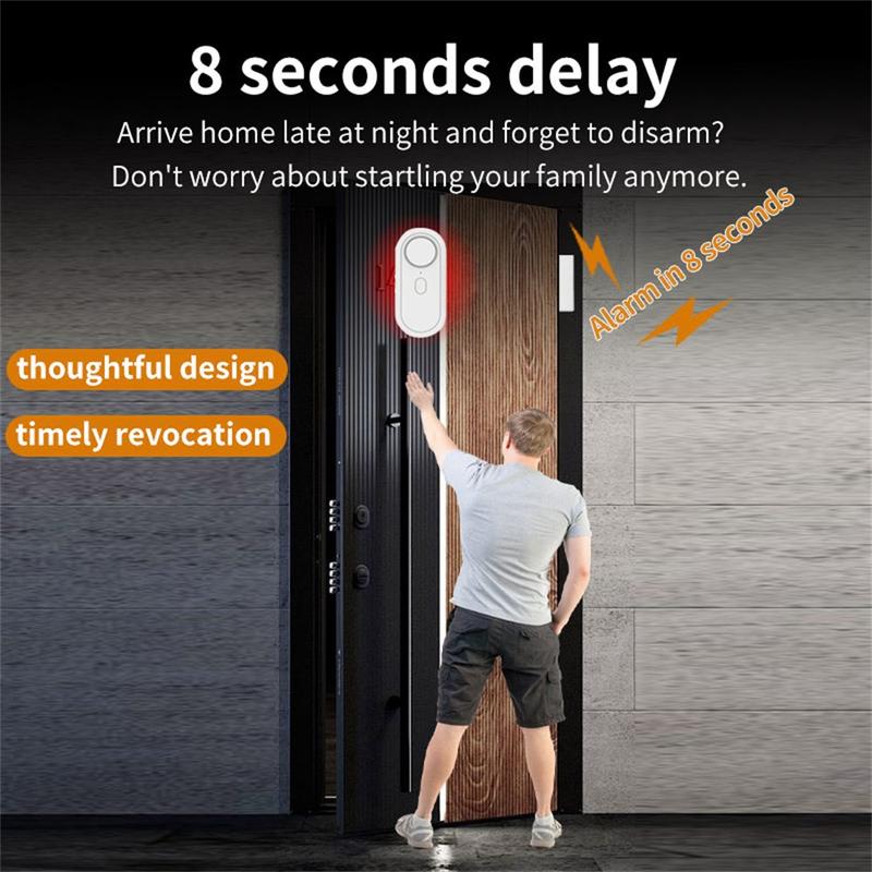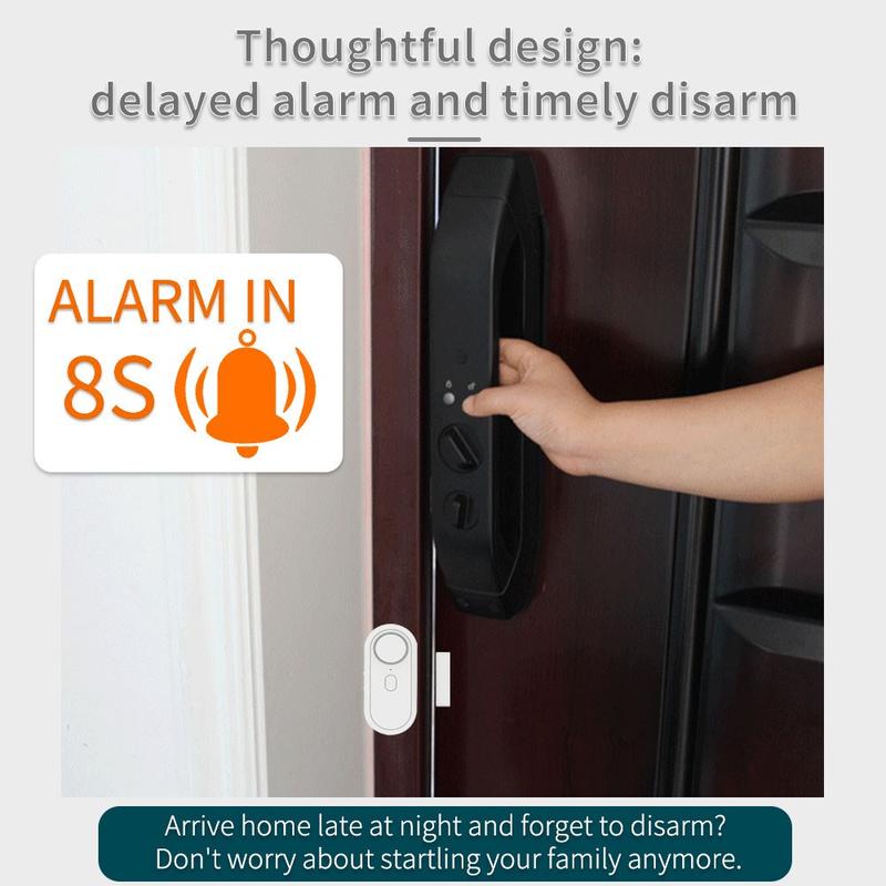 - Adjustable volume with high-decibel alarm to deter intruders and alert occupants