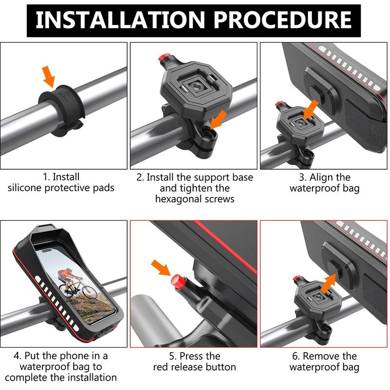 Keep navigation steady and screens safe in any weather. The HL-176A clamps quickly to bike, e-scooter or motorcycle bars and cushions your phone with a shock-absorbing structure while the IPX5 waterproof shell shields it from rain and road spray. A sensitive touchscreen window lets you zoom maps and answer calls, and the rotatable mount switches between portrait and landscape in a second—no tools required.