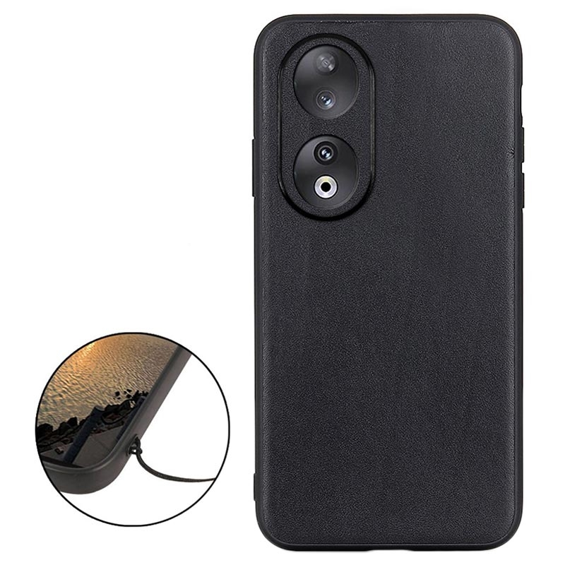 Style the look of your Honor 90 using this TPU case coated with genuine leather! TPU edges shield from drops and bumps and delicate, wear-resistant, leather-covered back from scratches, impacts, and dirt. Protect the screen and camera thanks to raised edges around them. Thanks to the unique designed cutout, attach Honor 90 to a lanyard (not included).