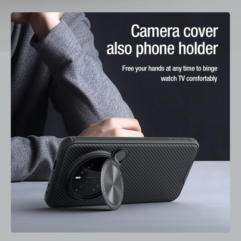 Protect your Honor Magic7 Pro with the Nillkin Camshield Prop series case. Crafted from a durable TPU and PC hybrid, this case provides superior protection against daily damage. The classic twill texture offers a comfortable, anti-skid grip, while built-in MagSafe compatibility ensures seamless wireless charging. A metal lens frame kickstand adds extra protection for your camera and provides hands-free viewing convenience. Non-slip bars and raised lips protect your Honor Magic7 Pro while maintaining easy access to all ports and functions.