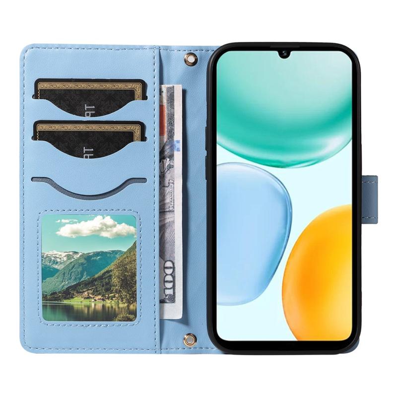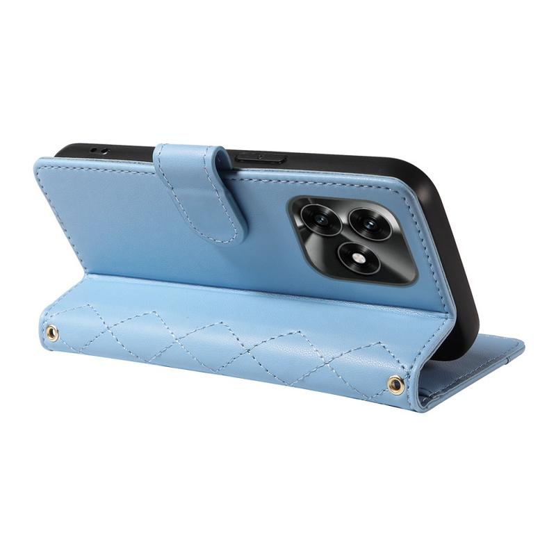 Luxury Quilted Wallet Case with Shoulder & Wrist Strap for Honor X5c Plus - Rhombus Pattern Protective Cover