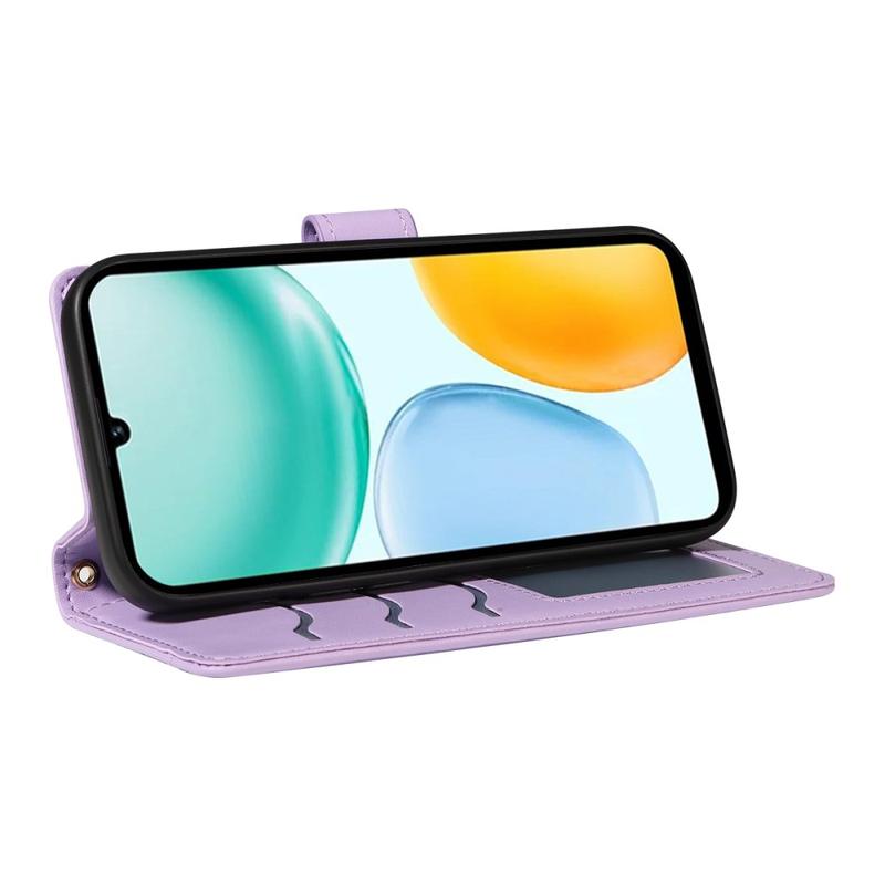 Luxury Quilted Wallet Case with Shoulder & Wrist Strap for Honor X5c Plus - Rhombus Pattern Protective Cover