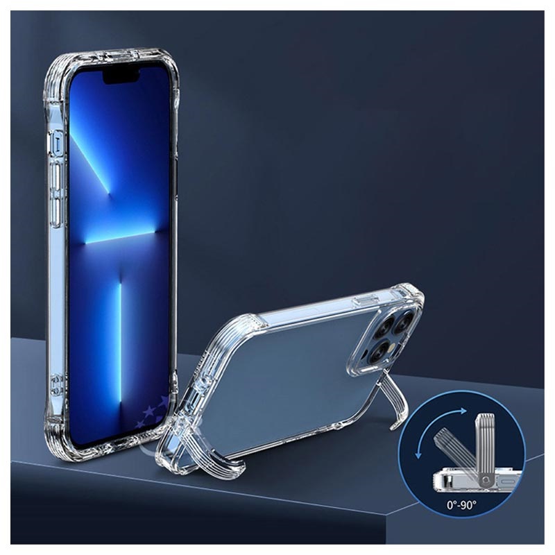 This durable hybrid case is a reliable, invisible shield that makes sure your iPhone 13 Pro Max stays like new. The shockproof case with a plastic back and elastic edges protects your precious iPhone 13 Pro Max from impacts, dents, and scratches. Upon that, all corners on this hybrid case are reinforced with a hook-shaped adjustable kickstand that ensures upgraded drop protection and gives you an extra hands-free experience.
