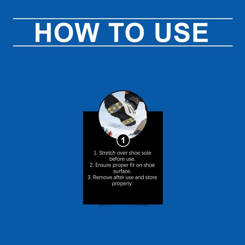 Traction spikes work by concentrating pressure onto small points, helping them bite into ice and packed snow where flat rubber soles often slip. For best performance, ice cleats should be fitted snugly and used on ice and snow - walking long distances on bare indoor floors can wear the spikes faster.