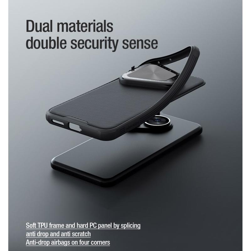 - Toto mimořádné hybridní pouzdro Nillkin CamShield Prop je vyrobeno z plastu a materiálů TPU