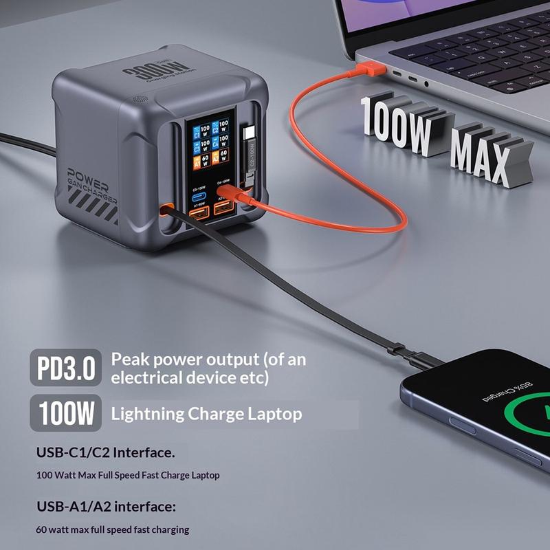 - Up to 300W total output for powering several devices from one desktop charger