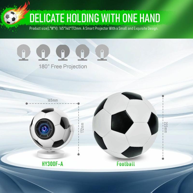 HY300F Football Shape Portable Projector - WiFi 6, Android 14, 170 ANSI Lumens, 720P Home Theater Projector - EU Plug
