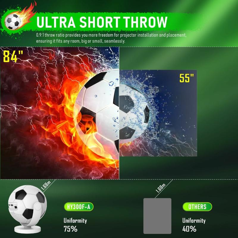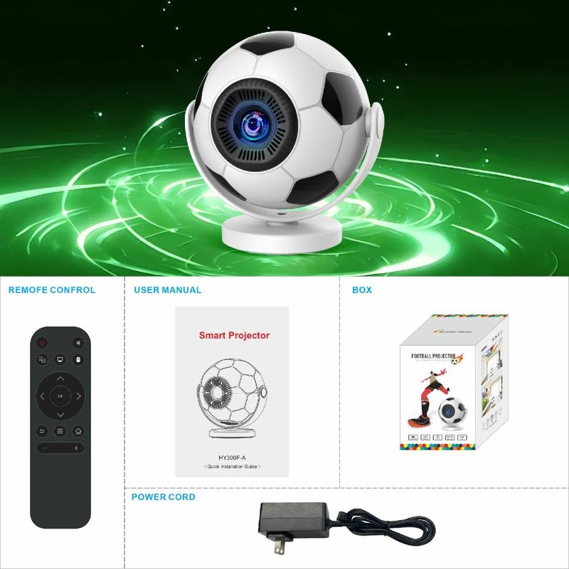 Bring big-screen entertainment into smaller spaces with the HY300F Football Shape Portable Projector. Designed with a distinctive football-inspired look, this compact smart projector combines playful style with practical home entertainment features. Whether you want to stream films, watch live sports, enjoy series, or project content onto a bedroom wall or ceiling, this model offers an easy and flexible way to create a more immersive viewing experience at home.