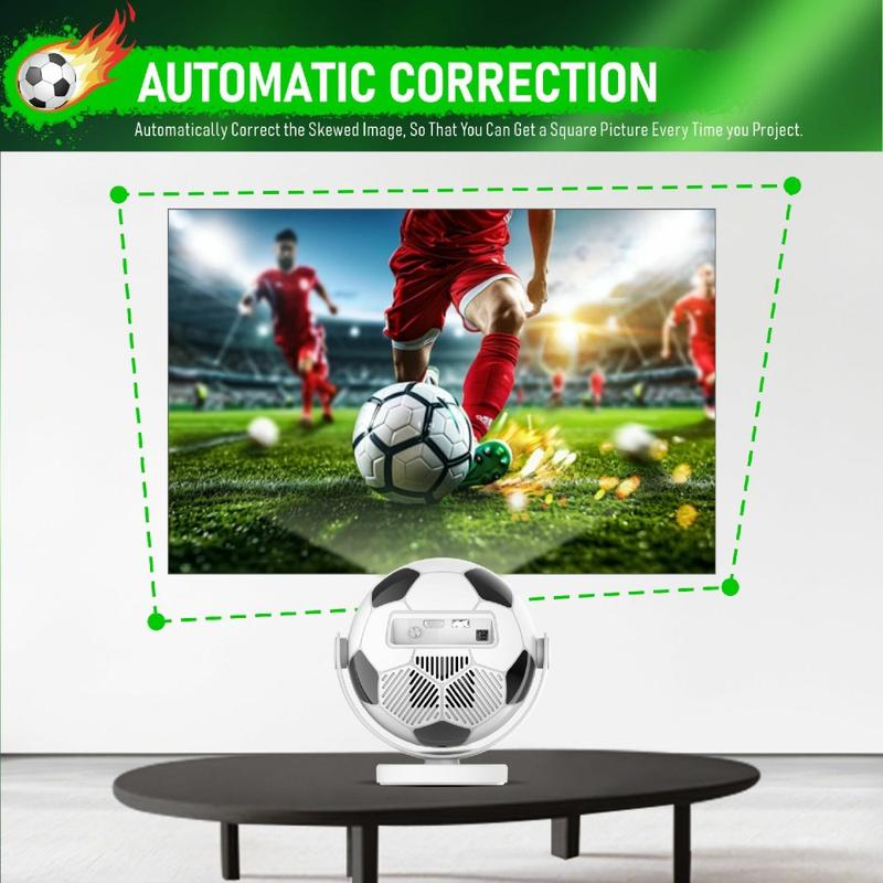 This projector is a great buy for anyone looking for a compact smart projection solution with modern wireless features. The football-inspired design makes it stand out visually, while the Android system, WiFi 6 support, and flexible projection angle make it practical for daily use. It is especially appealing for sports fans, casual streamers, and users who want a portable projector that does not require a complicated setup. With built-in smart functions and short throw convenience, it offers a simple way to enjoy big-screen entertainment without needing a large TV.