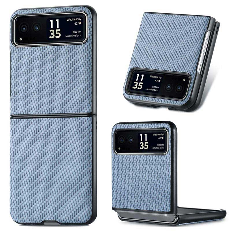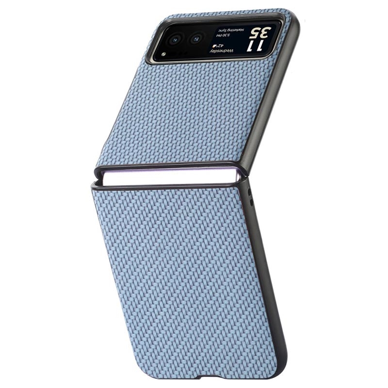 Tento tenký odolný kryt je vyroben z plastický, překrytý jemným polyuretanem s texturou z uhlíkových vláken, která zlepšuje úchop a příjemný pocit z ruky. Přesto je pouzdro lehké a tenké a váš Motorola Razr 40 zůstává funkční jako obvykle.