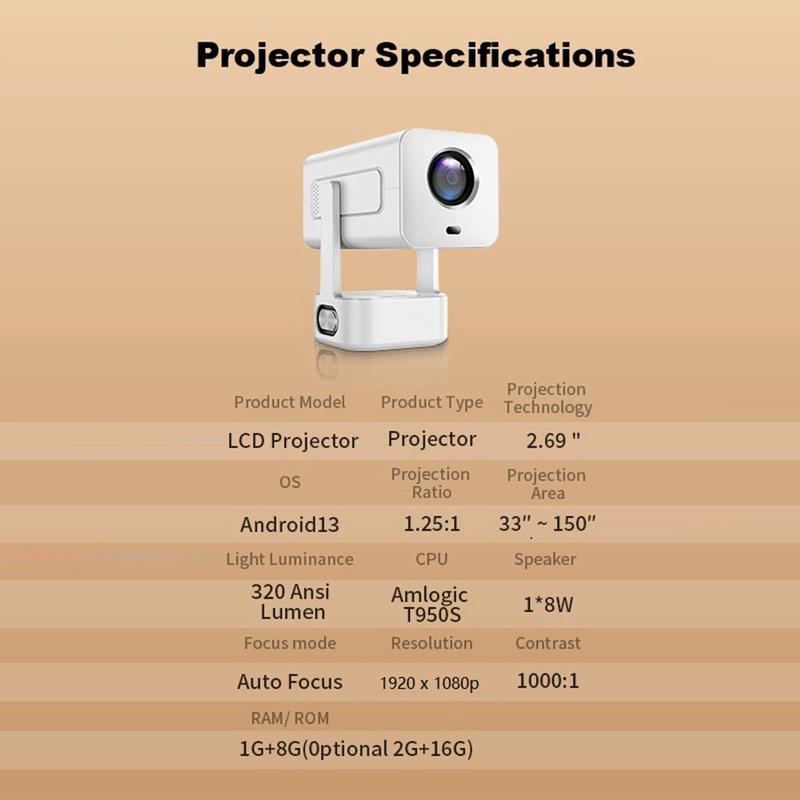 Enjoy flexible big-screen viewing with the IMC360 LCD projector, a compact smart projector designed for home entertainment and general multimedia use. With native 1920 x 1080 resolution, 320 ANSI lumens brightness, Android 13, dual-band WiFi 6, and autofocus, it combines projection, streaming support, and wireless connectivity in one device. Its compact shape also makes it easier to move between rooms when needed.