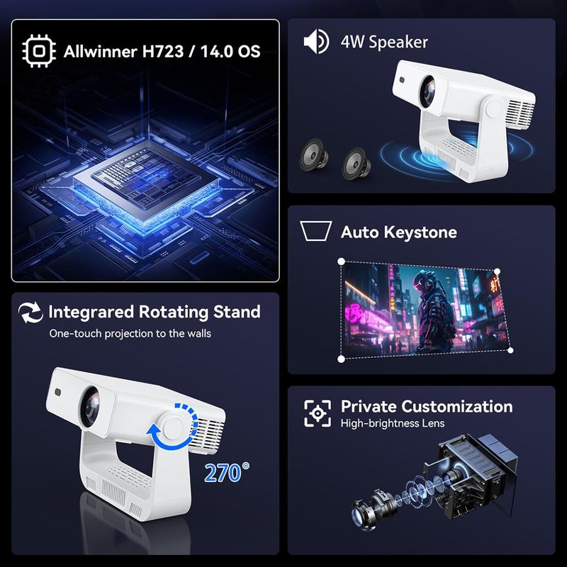 - Portable mini projector with Android 14 operating system