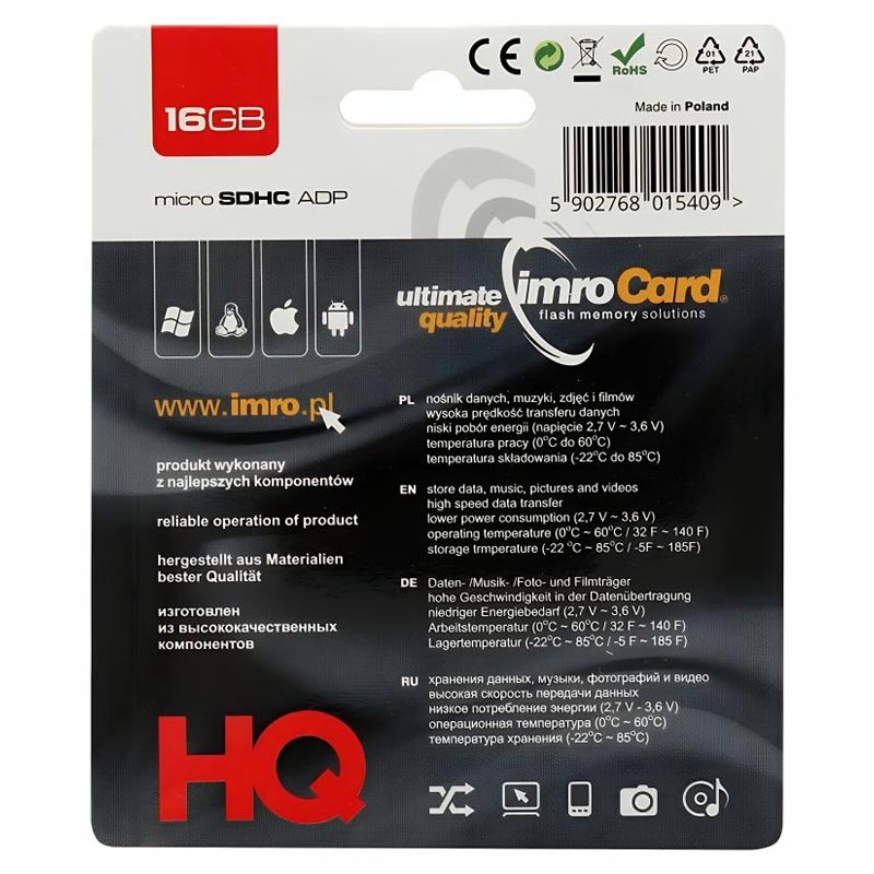 Imro microSDHC Memory Card 16GB with SD Adapter - Class 4, Up to 85 MB/s Read