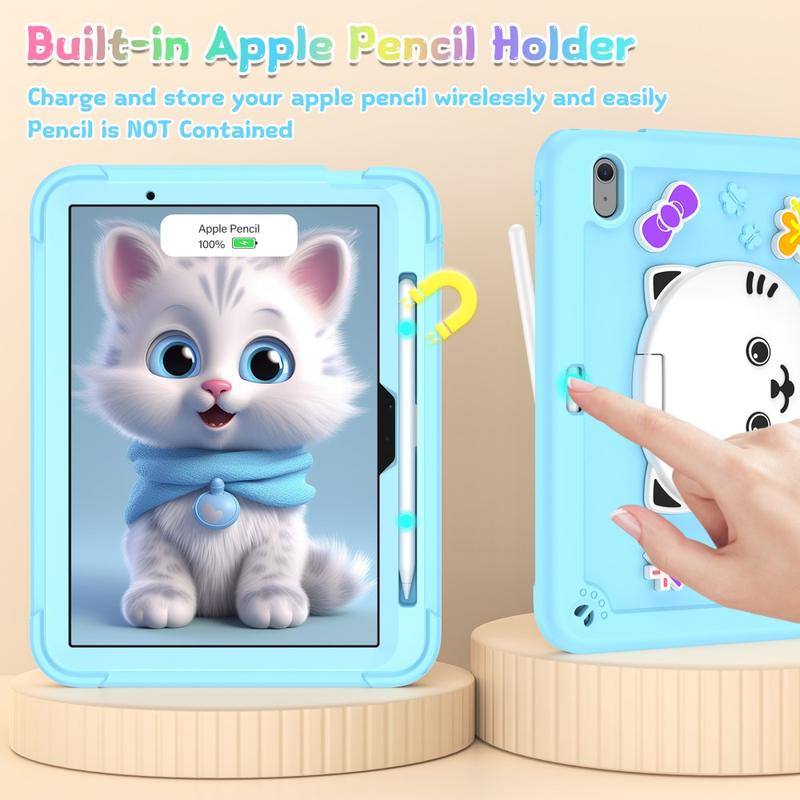 Cute Cat Hybrid Case with Kickstand, Shoulder Strap & Stylus Holder for iPad Air 11 (2024), iPad Air 11 (2025)