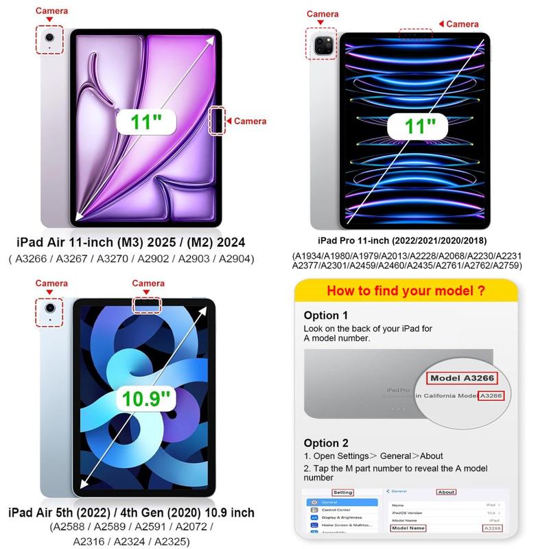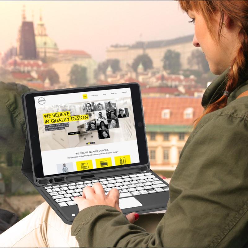 Enhance your iPad Air 11 2026/2025/2024, iPad Air 2022/2020 with the Bluetooth keyboard case, a multifunctional 2-in-1 accessory that combines protection, productivity, and style. Crafted from premium polyrethane, this sleek case provides full protection against scratches, shocks, and fingerprints while maintaining a professional look. The Bluetooth keyboard connects wirelessly for smooth, responsive typing, while the integrated touchpad supports multi-gesture control for effortless navigation. Featuring a backlit keyboard, you can type comfortably even in low-light environments. The built-in adjustable stand offers an ergonomic viewing angle, making it perfect for typing, streaming, or reading. Designed for business, travel, or everyday use, this keyboard case transforms your tablet into a portable workstation.